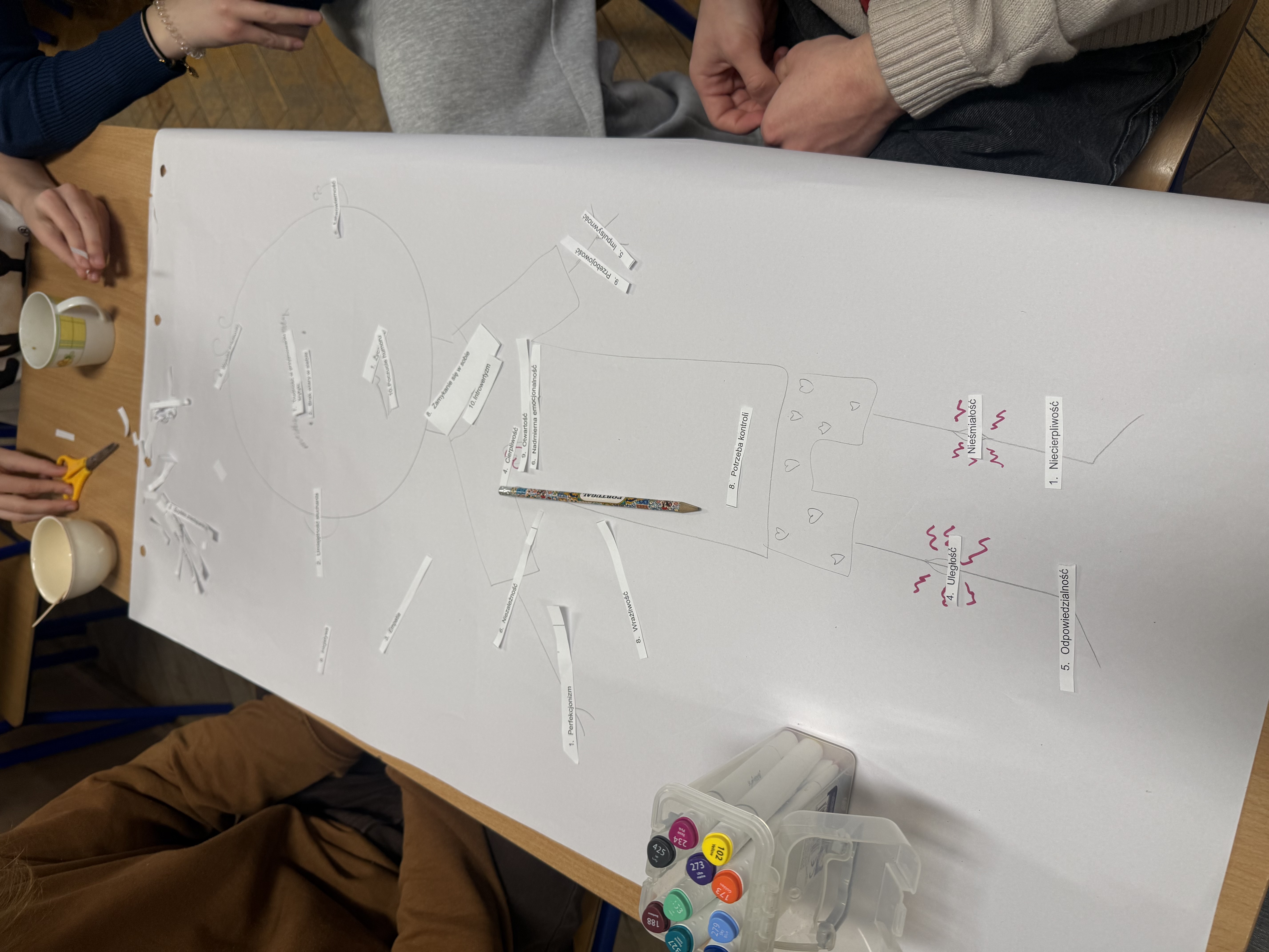 Podczas warsztatów rozmawialiśmy o tym, kim jest schoolworker – jakie ma cechy, zasoby i odpowiedzialność, ale też gdzie przebiegają granice pomagania. Zastanawialiśmy się, jak powinna wyglądać bezpieczna i mądra pomoc rówieśnicza na terenie szkoły.