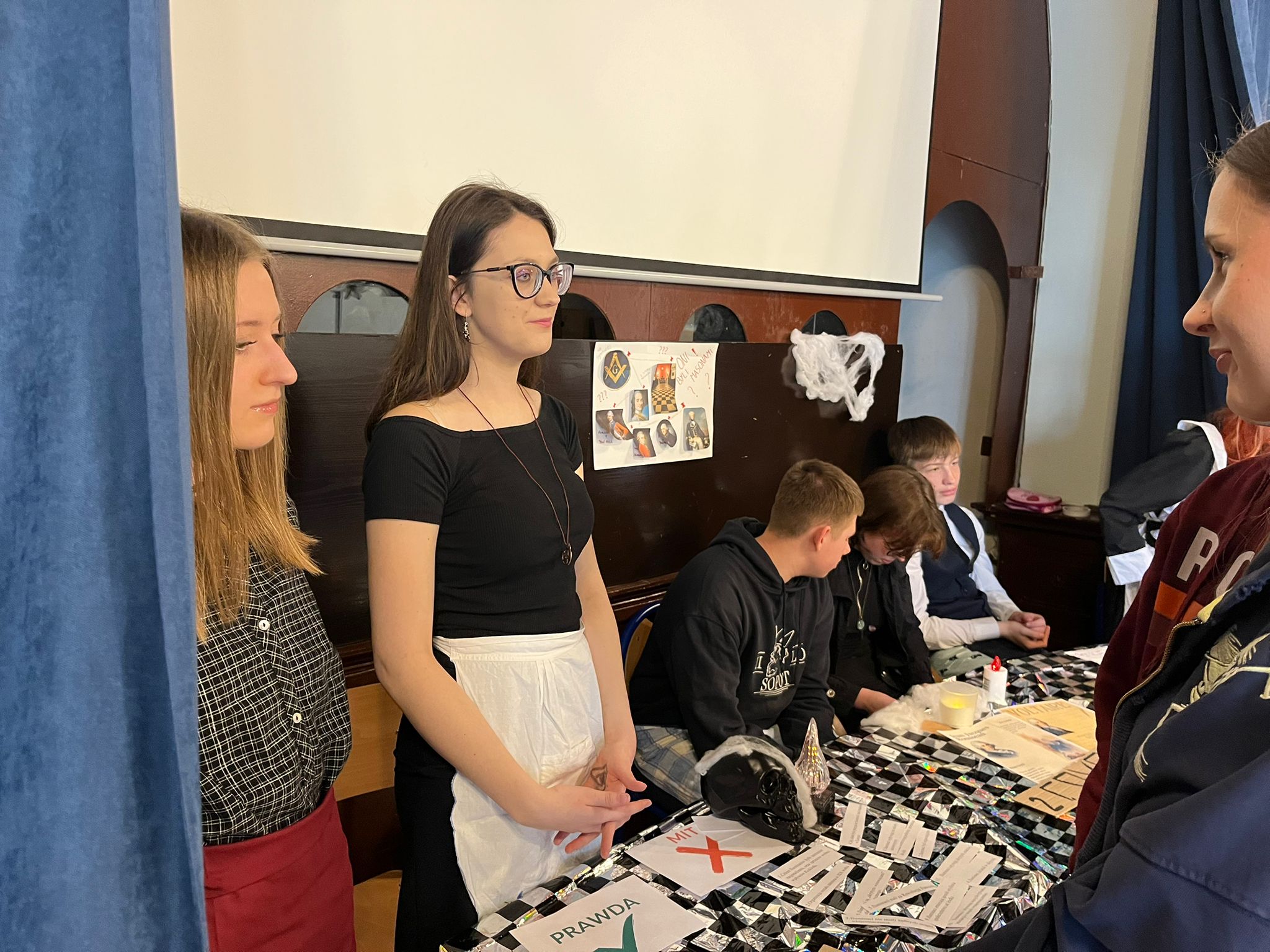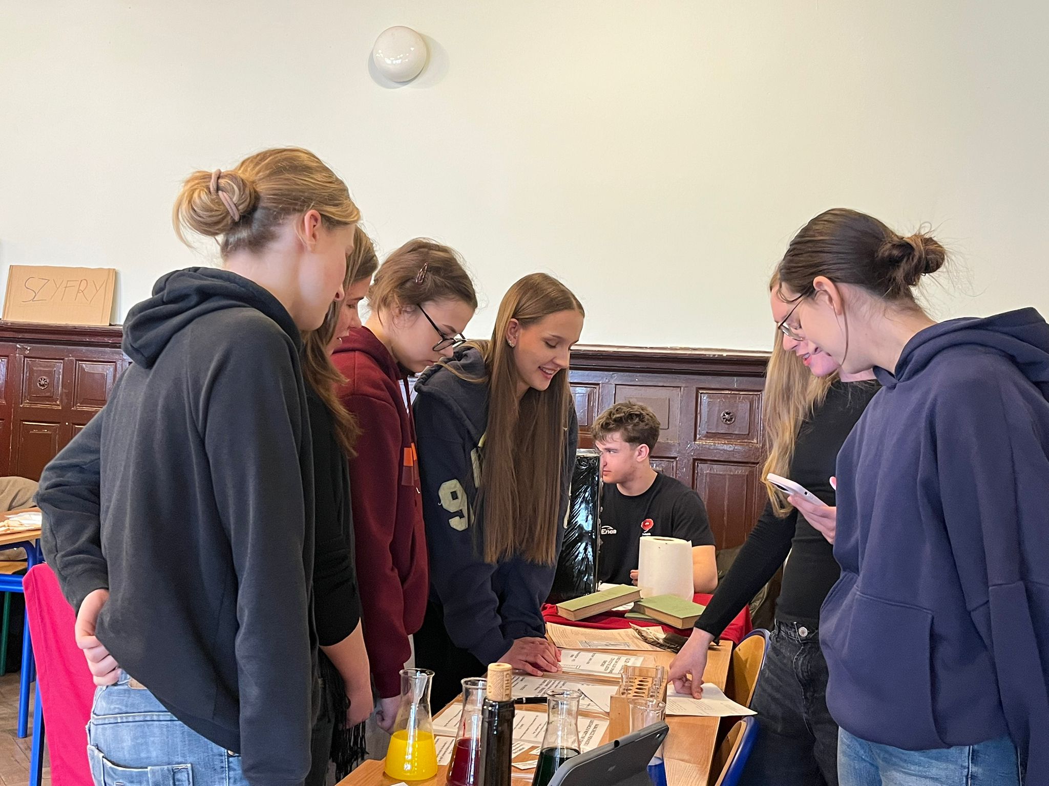 Aulę oraz sąsiednią salę odwiedziło aż 6 klas i wielu nauczycieli - zainteresowanie i entuzjazm uczestników były ogromne. To był bardzo udany dzień, który - mamy nadzieję - jeszcze bardziej rozbudził pasję odkrywania historii .
