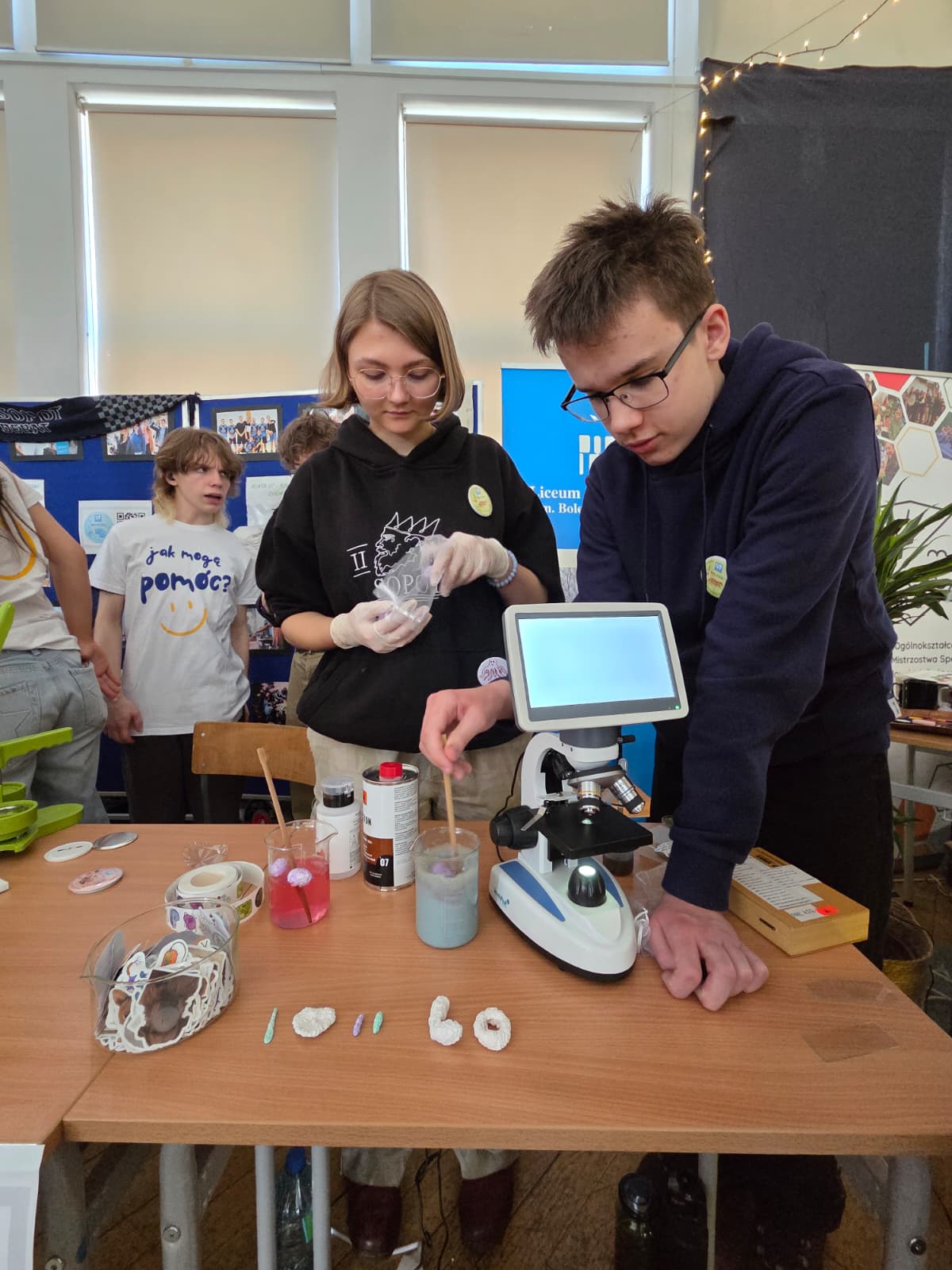 To, co przygotowaliśmy - quizy, doświadczenia, mikroskopowanie na ekranie czy robienie przypinek - było tylko dodatkiem, bo tak naprawdę najważniejsze były dla nas rozmowy z Wami