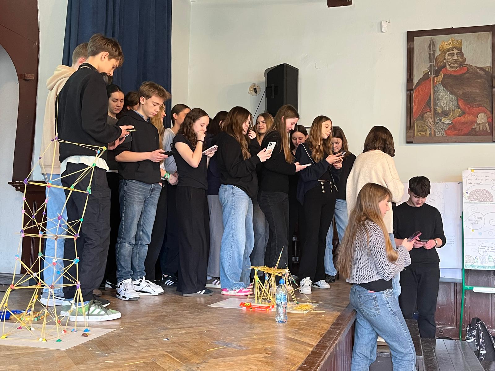 Nie zabrakło również wyzwań konstrukcyjnych – powstawały stabilne wieże z nietypowych materiałów – oraz sprawdzianu sprawności fizycznej pod czujnym okiem nauczycieli wychowania fizycznego. Uczestnicy zmierzyli się także z quizem pełnym ciekawostek o liczbie π.